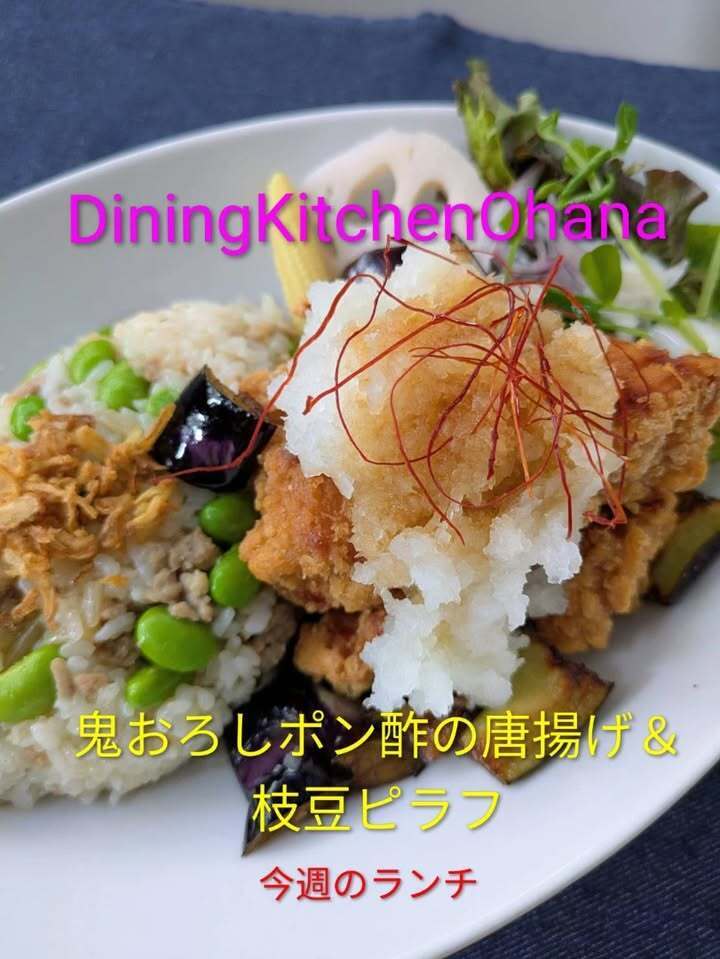 今週のランチ【鬼おろしポン酢のからあげ&枝豆ピラフ】¥1050