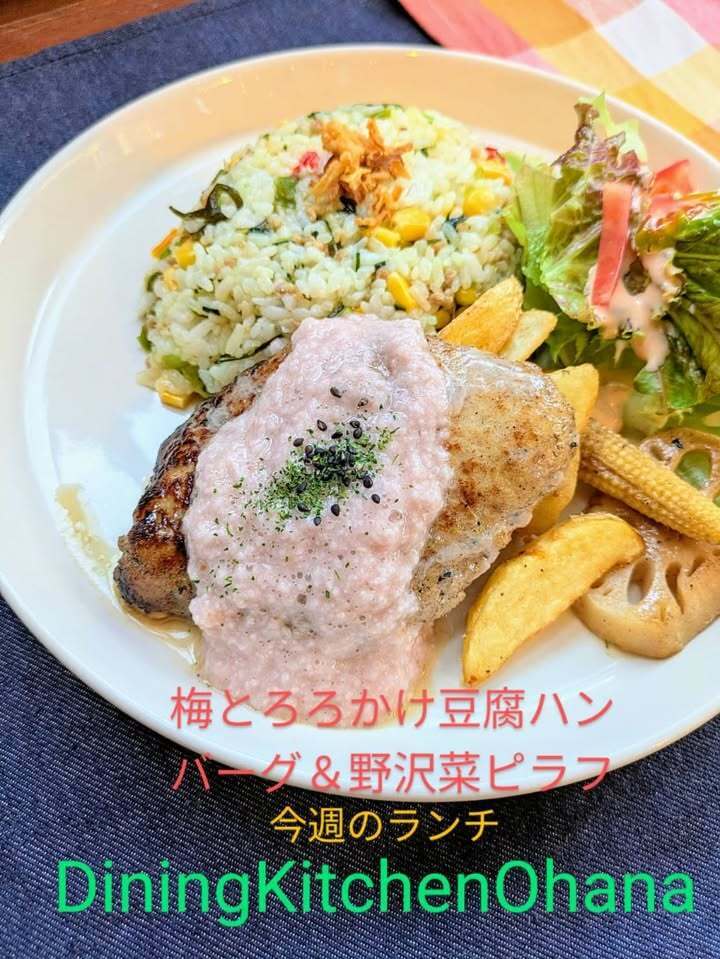 今週のランチ【梅とろろかけ豆腐ハンバーグ&野沢菜ピラフ】¥1050