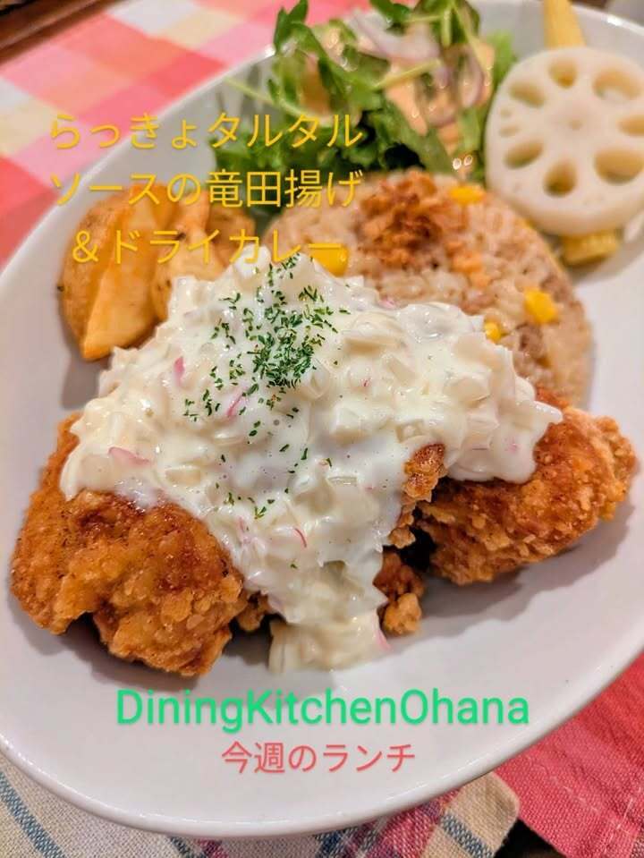 今週のランチ【らっきょタルタルソースの竜田揚げ&ドライカレー】¥1050