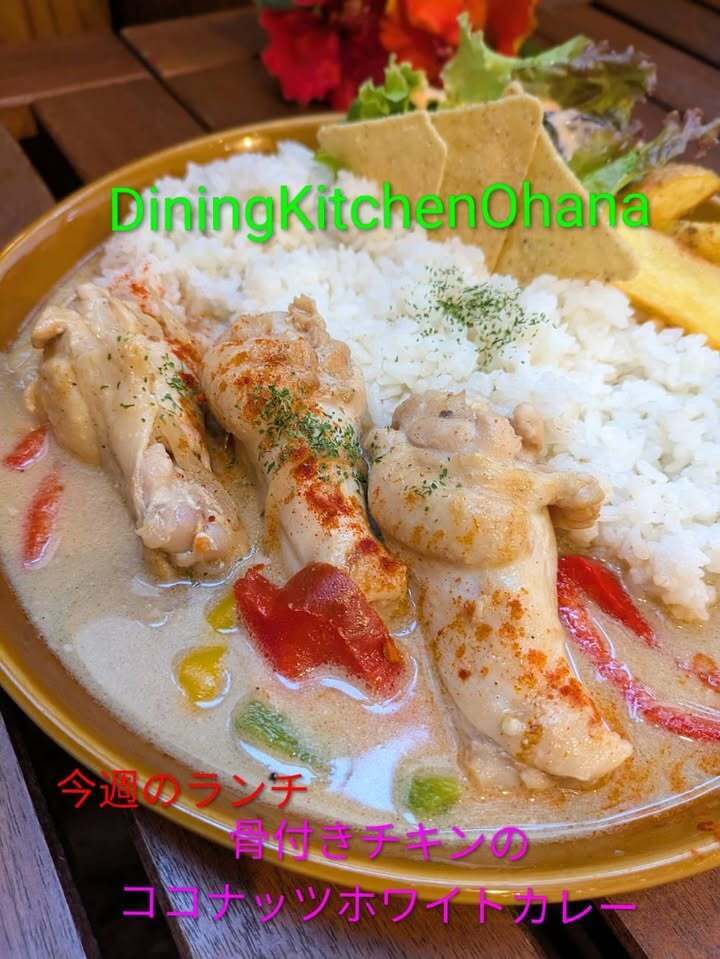 今週のランチ【骨付きチキンのココナッツホワイトカレー】¥1050