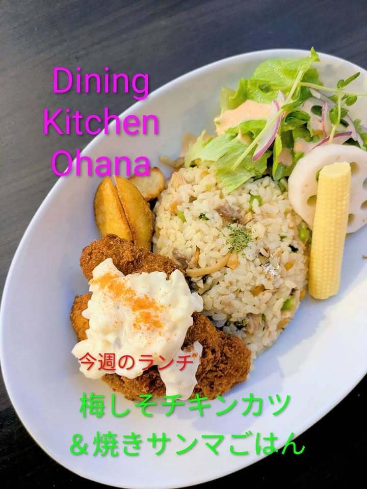 今週のランチ【梅しそチキンカツ&焼きサンマごはん】¥1050
